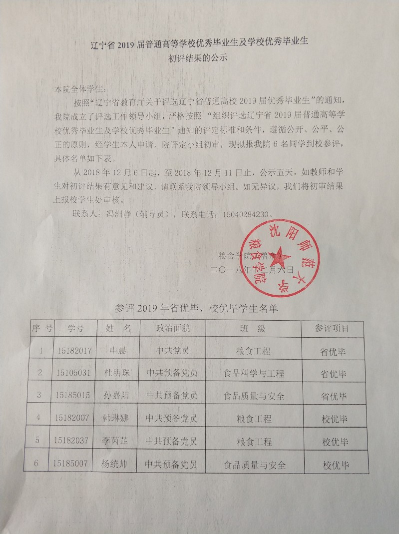辽宁省2019届高校优秀毕业生公司初评结果公示