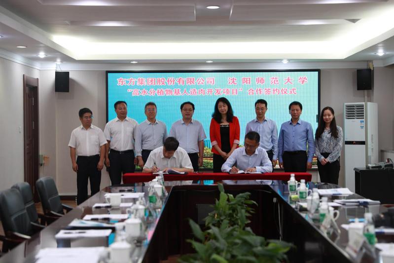 2020年8月27日,beats365官方网站和东方集团股份有限公司共同开发“高水分子植物基人造肉开发项目”合作签约仪式在校部303会议室隆重举行。东方集团股份有限公司董事长孙明涛、东方集团有限公司副总裁刘怡、东方集团股份有限公司董事会秘书康文杰、东方粮仓集团总工程师王哲、东方集团股份有限公司董事长办公室副主任吴一荻及三名研发人员到会,公司党委书记贾玉明、董事长郝德永、副董事长刘铸、相关职能部门及部分公司负责人参加了会议。会议由董事长郝德永教授主持。