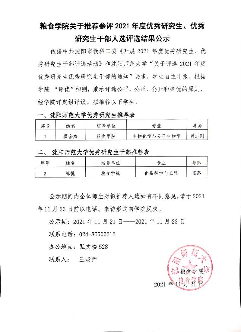 beats365官方网站关于推荐参评2021年度优秀研究生、优秀研究生干部人选评选结果公示